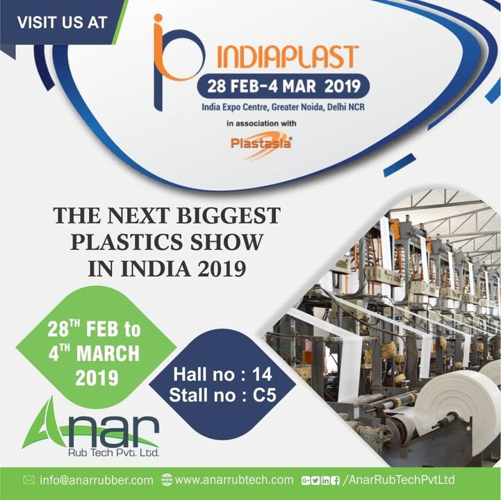 INDIAPLAST 2019 Anar Rub Tech Pvt ltd. is thrilled to invite Do visit us and see the mechanism of wide variety of rollers. An exhibition that will..